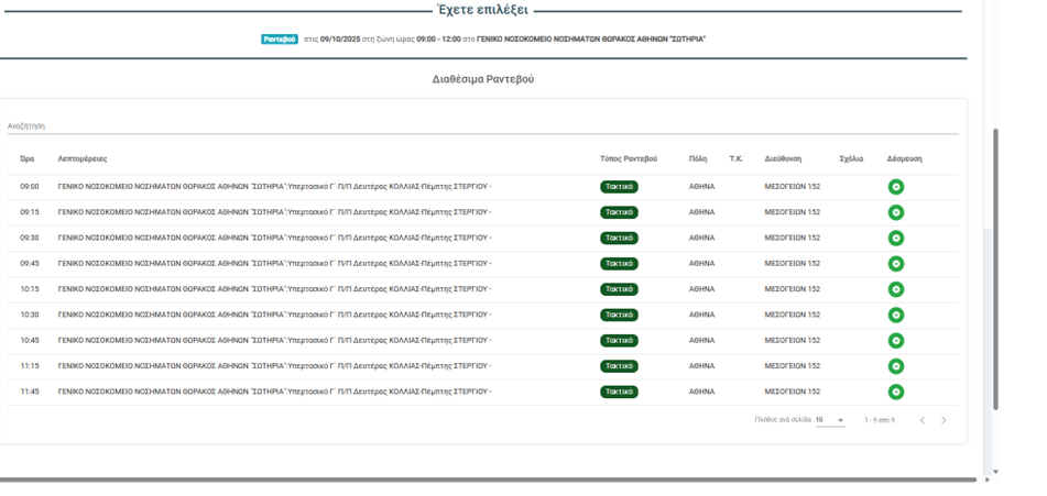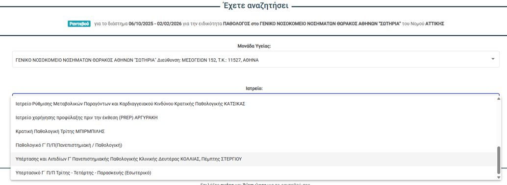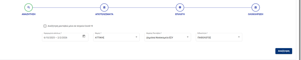 -Αναζήτηση ραντεβού & επιλογή ημέρας και ώρας για το ιατρείο: